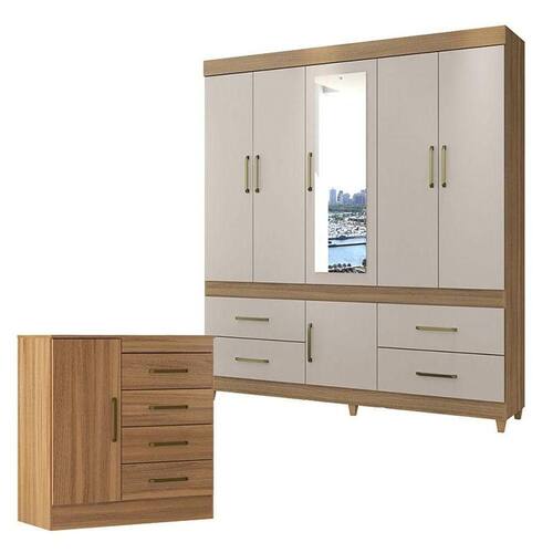 Cômoda Montevidéu e Guarda Roupa Casal Guarujá Amêndola Off White - Demóbile