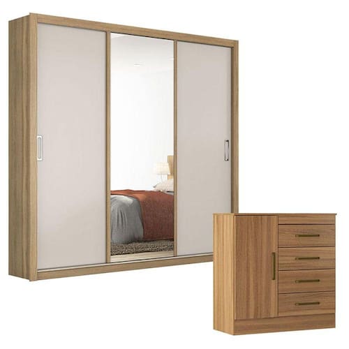 Cômoda Montevidéu e Guarda Roupa Casal Residence Amêndola Off White - Demóbile
