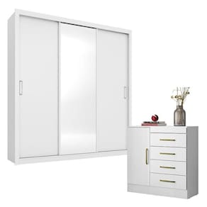 Cômoda Montevidéu e Guarda Roupa Casal Residence Branco - Demóbile