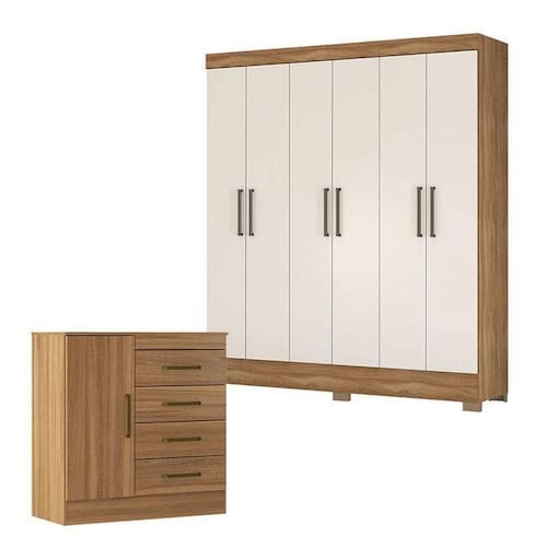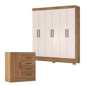 Cômoda Montevidéu e Guarda Roupa Casal Verso Amêndola Off White - Demóbile