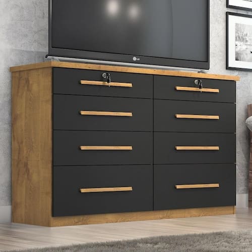 br> - Descrição, características e especificações do produto; - Tonalidade e dimensões do produto (imagens meramente ilustrativa Fabricante: Quarta Divisão Móveis | gavetas: 8 GAV | Altura: 93,5cm | Condição do item: Novo | Profundidade: 43,5cm | Material: Mdp | Marca: QUARTA DIVISÃO MÓVEIS | Largura: 1,22m | prazo para expedicao: 4 Cor: Castanho/onix
