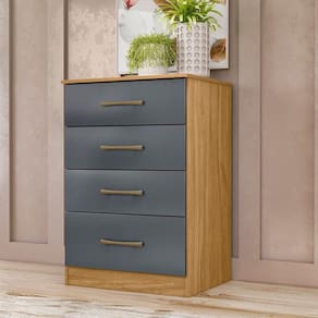 Organize roupas e acessórios com a cômoda Ms913, ideal para trazer praticidade ao quarto. Com quatro gavetas espaçosas, ajuda a manter peças dobradas e itens pessoais sempre à mão. As gavetas com corrediças metálicas proporcionam deslizamento mais suave no uso diário, enquanto os puxadores em plástico facilitam a abertura. O acabamento fosco na combinação de cinza com freijó harmoniza com diferentes estilos de decoração em quartos de casal, solteiro ou outros ambientes. Uma solução funcional para quem busca organização com visual clássico e discreto.