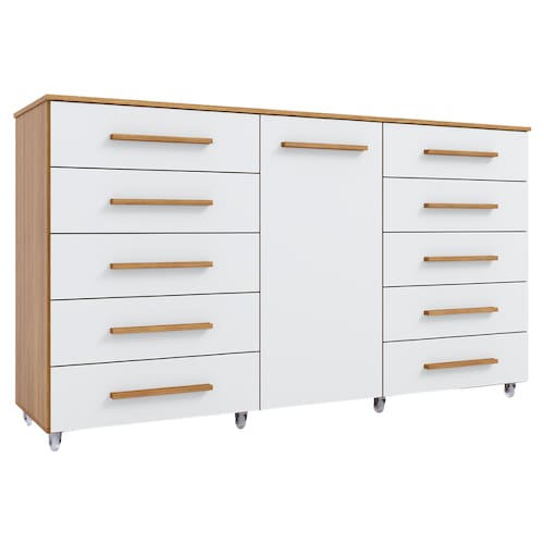 Com design moderno e elegante, a cômoda multiuso Ferrari é a combinação perfeita entre funcionalidade e estilo. Possui 10 gavetas espaçosas e 1 porta com prateleira interna, oferecendo amplo espaço para organização e armazenamento de roupas, acessórios e outros itens pessoais. As gavetas com corrediças telescópicas garantem um deslizamento suave e silencioso, enquanto as dobradiças de pressão proporcionam praticidade e segurança ao abrir e fechar as portas. Além disso, os rodízios em silicone facilitam a movimentação do móvel, permitindo mudar sua posição com facilidade sem danificar o piso. A pintura UV de alta qualidade oferece um acabamento duradouro e resistente, garantindo que a cômoda mantenha sua aparência impecável por muito mais tempo. Ideal para quem busca sofisticação e praticidade no ambiente, essa cômoda é uma excelente escolha para quartos, closets ou espaços multifuncionais.
