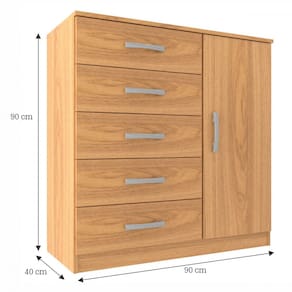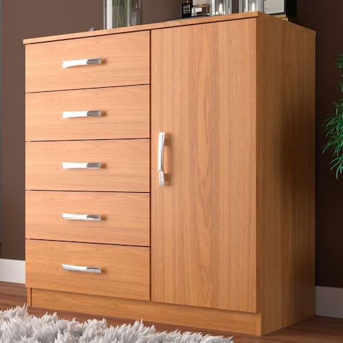 O(a) Cômoda Napoles 1 Porta 5 Gavetas Cinamomo - Loja é produzido em MDP na escala de brilho Fosco, e possui um grau de dificuldade de montagem: Médio.