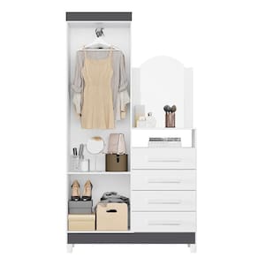 A Cômoda New Capri 2 Portas e 4 Gavetas com Espelho da Móveis Albatroz é perfeita para quem busca praticidade e elegância no ambiente. Fabricada em MDP com pintura UV, oferece resistência e acabamento moderno. Conta com 2 portas com dobradiças metálicas, cabideiro interno e 4 gavetas com corrediças telescópicas que garantem um deslizamento suave. O destaque fica por conta do espelho com topo curvo, medindo 60 x 39 cm, ideal para auxiliar na rotina diária. Os puxadores em MDF revestidos e os pés em ABS completam o visual sofisticado e funcional desta peça versátil.