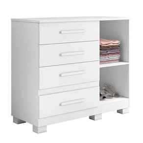 Quer um móvel para deixar seu quarto mais prático e funcional? A Cômoda Florença é perfeita para você. Possui quatro gavetas com excelente profundidade e espaço interno. As gavetas com corrediça telescópica proporcionam maior abertura e melhor aproveitamento do espaço. É fabricada com materiais de alta qualidade, oferecendo mais firmeza e durabilidade. Além disso, tem uma porta que auxilia na organização e armazenamento dos objetos. Os puxadores são madeirados, proporcionando um ótimo acabamento ao móvel.