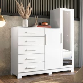 Cômoda New Master Branco - Albatroz Móveis Cômoda New Master - Albatroz Móveis:A Cômoda New Master da Albatroz Móveis é a escolha ideal para quem busca praticidade e estilo na organização do seu ambiente. Com um design moderno e funcional, esta cômoda oferece amplo espaço de armazenamento para suas roupas, acessórios e objetos pessoais, mantendo tudo organizado e ao alcance das mãos. Suas gavetas espaçosas deslizam suavemente, facilitando o acesso aos seus pertences e garantindo praticidade no dia a dia. Construída com materiais de alta qualidade, esta cômoda é resistente e durável, garantindo sua satisfação por longos anos. Adquira já a Cômoda New Master e transforme seu quarto em um espaço ainda mais funcional e ões do Produto Montado:Altura: 166cmLargura: 158cmProfundidade: 47cmObservações:- Produto em MDP- Corrediça Telescopica- Pés em ABS- Pintura Ultravioleta
