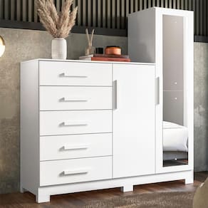 Esta elegante Cômoda New Master é o complemento perfeito para qualquer quarto, oferecendo espaço de armazenamento adicional com suas gavetas espaçosas e suas prateleiras removíveis, fazendo que você escolha a melhor distribuição. Adquira já e transforme o seu espaço!