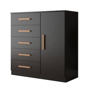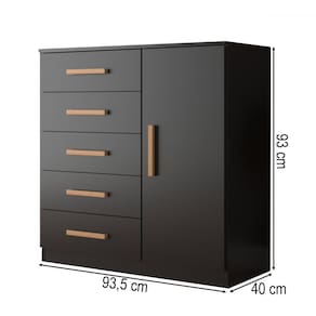 O(a) Cômoda New Monaco 1 Porta 5 Gavetas Black - Evidencia Móveis é produzido em MDP na escala de brilho Semi-Brilho, e possui um grau de dificuldade de montagem: Médio.