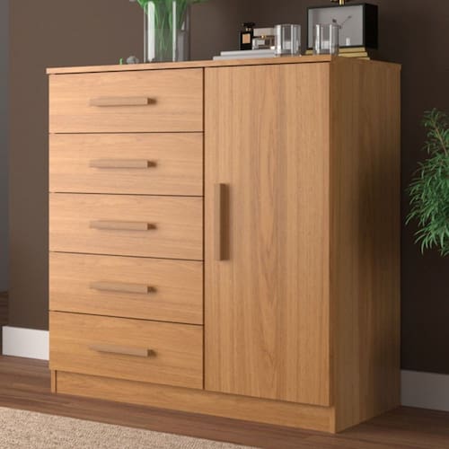 O(a) Cômoda New Monaco 1 Porta 5 Gavetas Cinamomo - Evidencia Móveis é produzido em MDP na escala de brilho Semi-Brilho, e possui um grau de dificuldade de montagem: Médio.