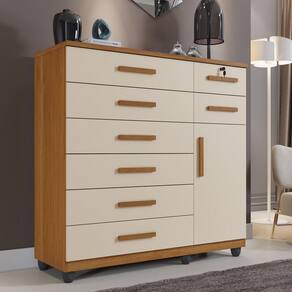 A CÔMODA VITÓRIA PLUS COMPELTA SEU QUARTO COM MUITO CHARME E BELEZA, POSSUI 8 GAVETAS MUITO ESPAÇOSA SENDO 1 COM CHAVE, COM CORREDIÇAS PELESCOPICA QUE DA MUITA SUAVIDADE E RESISTENCIA ,AINDA POSSUI 1 PORTA E TEM 1 PRATELEIRA INTERNA QUE CONSTITUI UMA SAPATEIRA BEM DEFINIDA, ALÉM DE POSSUIR TAMPO DE 25 MM QUE GARANTE UMA VIDA ÚTIL MUITO MAIOR E MUITA RESISTENCIA .