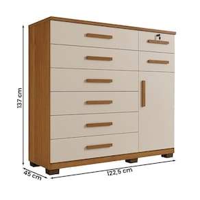 Quantidade de gavetas: 08, sendo 1 com chave;
