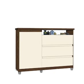 Aliada da organização do seu dormitório, a Cômoda Sky é a peça que faltava para garantir um dia a dia mais otimizado e um ambiente bem decorado. Ela pode ter o uso compartilhado com o do guarda-roupa já que as gavetas se reservam para peças menores e dobráveis, mas se o seu cômodo é pequeno, ela também vai bem como a protagonista para deixar tudo sempre à mão. Ah, além do visual charmoso que ajuda na composição do lar-style, a peça ainda tem um amplo tampo para você dispor cosméticos, enfeites ou outros itens pertinentes à sua rotina. Agora é só combiná-la com o restante do mobiliário e conquistar o quarto dos seus sonhos! Descrição do TamanhoAltura: 100 cmLargura: 97 cmProfundidade: 43,8 cm Características:Número de portas: 1 PortaNúmero de gavetas: 3 GavetasTipo de pé: Fixo de PVCAcabamento: FoscoMaterial da dobradiça/trilho da porta MetalMaterial da estrutura MDPEspessura do material da estrutura (mm) 12Número de nichos: 1Número de pés 6Peso suportado máximo (kg) 60 Atenção!- Confira as dimensões deste produto e certifique-se de que passará normalmente por supostos elevadores, portas, escadas e/ou corredores de sua moradia;- As imagens são ilustrativas, eletrodomésticos e demais objetos que compõem o cenário, não fazem parte do anúncio;- Sobre a tonalidade das cores, poderá ocorrer alterações conforme a configuração do seu monitor. - Orientamos que a montagem e instalações do produto seja realizado por um técnico de sua confiança, após a sua entrega. - Oferecemos retirada em nossa loja Saimys Móveis na Av. Ragueb Chohfi, °3411 (08341-420) para não haver custo de envio.