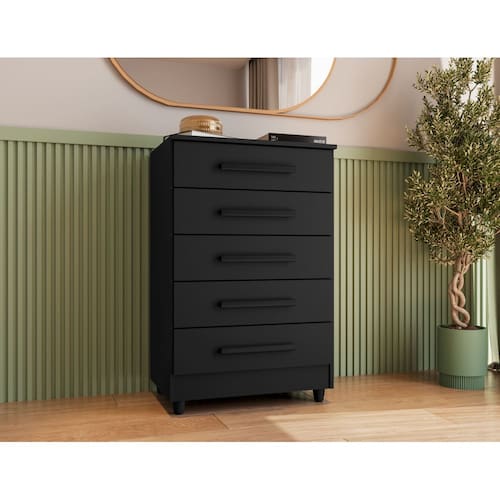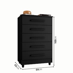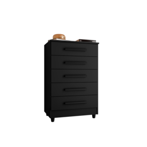 - Estrutura: MDP e MDF; - 5 gavetas espaçosas com puxadores modernos; - Pés e puxadores em PVC; - Ideal para roupas, acessórios e itens diversos; - Design clean e contemporâneo; - Estrutura resistente com excelente acabamento; - Versátil: pode ser usada no quarto, closet ou escritório.