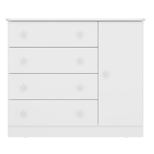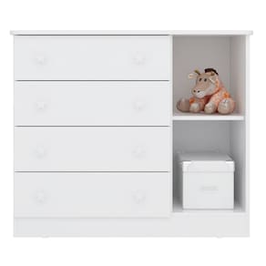 A linha infantil da Qmovi era o que faltava para o seu bebê. Uma linha com vários produtos modernos e um padrão de qualidade para as mamães exigentes e preocupadas com a segurança dos seus bebês. A Cômoda Sapateira Doce Sonho com 04 gavetas e 1 porta é a peça certa para complementar o quarto, com muito estilo valorizando a decoração. Um móvel bonito, útil e que ocupa pouco espaço. Estrutura reforçada em MDP de qualidade e belíssimo acabamento em pintura UV proporcionando maior durabilidade e resistência ao móvel. Complemente seu ambiente com bom gosto e qualidade!