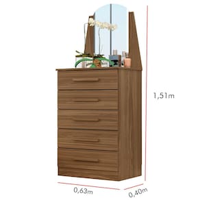 Além das gavetas, essa cômoda da Palumóveis contém uma bancada prática e multifuncional para colocar variados objetos decorativos, entre outros. Com 151cm de altura, 63cm de largura e 40cm de profundidade, a cômoda Veneza insere mais estilo e sofisticação ao local.