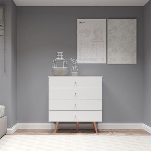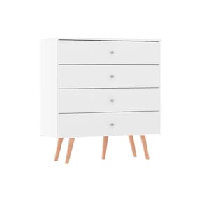 Cômoda Para Bebê Com 4 Gavetas Pés Palito Branco Menu Móveis Branco Voce ja parou pra pensar em como uma comoda pode transformar o seu ambiente? Ela e o movel perfeito para dar um toque retro e moderno ao mesmo tempo, alem de ser super versatil e combinar com todos os estilos de decoracao. Nao importa se voce e do tipo minimalista ou do tipo acumulador, a comoda tem espaco de sobra para guardar tudo o que voce precisa e manter tudo organizado. E nao e so isso, ela ainda e produzida com materiais de excelente qualidade, garantindo que dure muitos anos. Entao, nao perca mais tempo e de um upgrade na sua decoracao com uma comoda retro e funcional. Seu espaco vai ficar mais aconchegante e bonito, voce merece! O melhor em moveis no design atual aliando qualidade e otimos precos, so na Menu Moveis! Caracteristicas: Produzida em MDP de 12 e 15 mm Acabamento UV na cor Branco 04 Gavetas com Corredicas Metalicas Puxadores Ponto em ABS na cor Cinza Pes Retro em Madeira com 22 cm