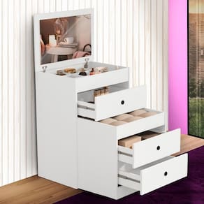 Comoda Para Maquiagem 3 Gavetas Banqueta e Espelho Branco Shop JM