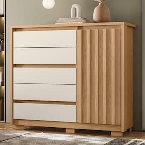Procurando por uma solução de armazenamento inteligente e funcional para o seu quarto? Conheça a Cômoda Para Quarto 1 Porta 125cm Ripada Duetto Off/Freijó, da Albatroz. Com um design moderno e espaçoso, essa cômoda é perfeita para qualquer quarto.