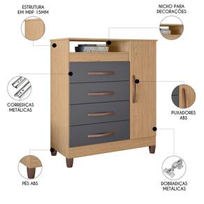 Conteúdo da embalagem: 1 Cômoda.