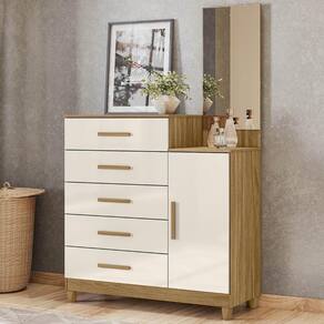 Com cinco gavetas espaçosas com corrediças metálicas, e uma porta com puxadores em MDF, você tem espaço de sobra para guardar roupas, acessórios, documentos e muito mais. A prateleira interna é ideal para manter tudo organizado e o tampo amplo com espaço para produtos de uso do dia a dia para manter sempre ao alcance das mãos.
