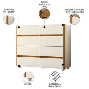 Esta Cômoda Para Quarto 8 Gavetas 120cm Lynd A02 Off/Cinamomo, da Mpozenato, é a solução perfeita para quem busca organização e estilo para o Quarto.