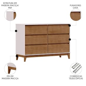 Cômoda Para Quarto 125cm 6 Gavetas Solvi Off White/Freijó F07