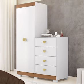 Otimize cada centímetro do seu quarto com uma peça de design estratégico. A Cômoda Roupeiro Tulsa elimina a necessidade de comprar dois móveis separados, economizando espaço e criando uma linha visual limpa e organizada. Use as gavetas profundas para roupas íntimas, pijamas e acessórios, e o amplo compartimento com portas para peças maiores, como edredons, calçados ou bolsas. Em outras palavras, essa cômoda 2 em 1 é a solução completa para quem busca organização eficiente sem abrir mão de um visual moderno e integrado. Não espere mais e garanta já o seu!
