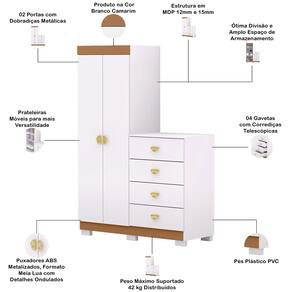 Estrutura em MDP 12mm e 15mm, com acabamento em pintura UV na tonalidade Branco Camarim.