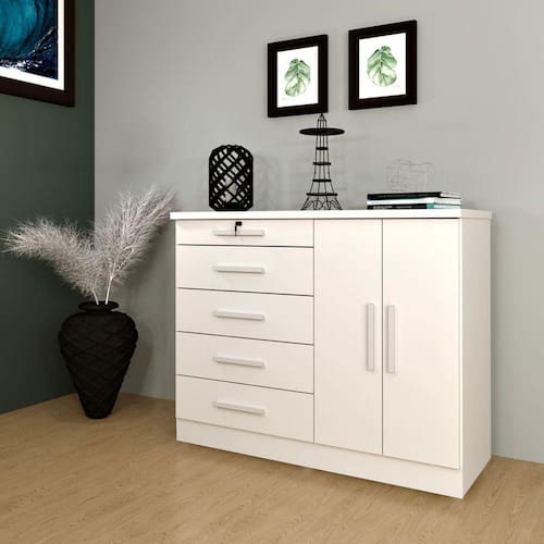 1 Cômoda para Quarto 2 Portas 5 Gavetas - Istambul