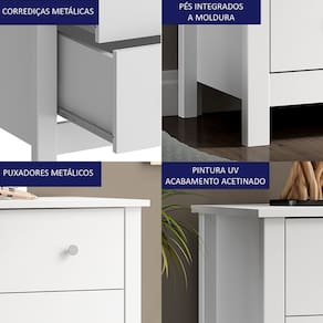 Peso Suportado: 20Kg no tampo e 10kg em cada gaveta