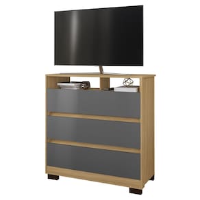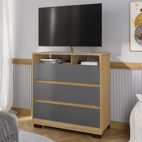 Ideal para guardar roupas de cama, mesa e banho ou até mesmo blusas de inverno ou peças que não amassam, a Cômoda para Quarto 3 Gavetas 90cm Califórnia Carvalho Americano/Grafite, da Incorplac, foi desenvolvida com a proposta de adicionar organização e funcionalidade ao seu ambiente.