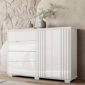 Perfeita para o seu Quarto, esta Cômoda combina estilo e funcionalidade. Dispondo de quatro gavetas com corrediças telescópicas, duas portas com dobradiças metálicas e amortecedor e uma prateleira interna, ela oferece amplo espaço para organizar roupas, acessórios e objetos pessoais, sendo possível também acomodar itens sobre o tampo, complementando a decoração do seu espaço com mais personalidade. O design das gavetas com cava, que dispensa o uso de puxadores, somado ao detalhe ripado das portas adiciona sofisticação ao móvel, tornando-o um ponto de destaque tanto no Quarto do Casal quanto no Quarto de Solteiro. Fabricada em MDP/MDF de 12 e 15mm com acabamento em pintura UV de alta qualidade, ela garante resistência e durabilidade por muito mais tempo aliando praticidade e beleza em um único produto.