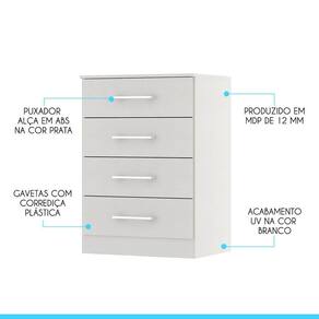 Você merece o melhor quando se trata de móveis para sua casa e a escolha certa para atender todas as suas necessidades. Com um design atual, une versatilidade, conforto e beleza. Com quatro gavetas, você terá muito espaço para manter tudo organizado e ao alcance das mãos. Produzida com materiais de excelente qualidade, garantindo a sua resistência ao desgaste diário e mantendo sua beleza e funcionalidade por muito tempo. O melhor em móveis no design atual aliando conforto, qualidade e ótimos preços, só na Menu Móveis!
