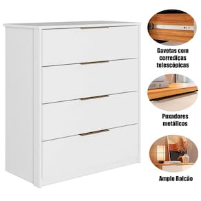 A Cômoda para Quarto 4 Gavetas Alina é a combinação perfeita entre beleza e funcionalidade. Com um design moderno e versátil, ela se adapta facilmente a diferentes estilos de decoração, trazendo mais organização e sofisticação ao ambiente. Ideal para complementar o quarto, oferece praticidade sem abrir mão do charme.