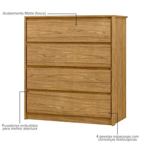 Cômoda Para Quarto 4 Gavetas - Carla Marrocos Cômoda para Quarto 4 Gavetas - Carla Marrocos - A elegância está nos detalhes. E nas gavetas. A Cômoda Carla é a união perfeita de design minimalista e máxima funcionalidade. Com 4 gavetas espaçosas equipadas com corrediças telescópicas, ela oferece organização inteligente para o seu quarto. O destaque fica por conta dos puxadores cava, que criam uma frente limpa e moderna. Construída em MDP de alta qualidade e pesando mais de 33kg, sua estrutura é robusta e durável. Disponível em múltiplos acabamentos (Alto Brilho, Fosco e Texturizado) para combinar com seu estilo.