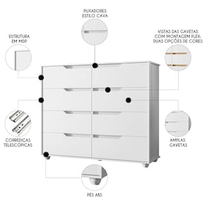 A Cômoda Para Quarto 8 Gavetas 136cm Doble Flex Branco/Freijó, da Mpozenato é a solução perfeita para quem precisa de muito espaço de armazenamento com um design sofisticado e funcional.
