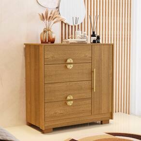 Com quatro gavetas equipadas com corrediças metálicas e uma porta lateral com prateleira móvel, a Cômoda Para Quarto oferece versatilidade e praticidade. Ela permite uma organização eficiente de diversos itens, mantendo o ambiente sempre arrumado e acessível. A estrutura foi projetada para garantir funcionalidade sem abrir mão do estilo.