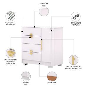 Cômoda Para Quarto 93cm Com 1 Porta Nara Branco V02 - Mpozenato