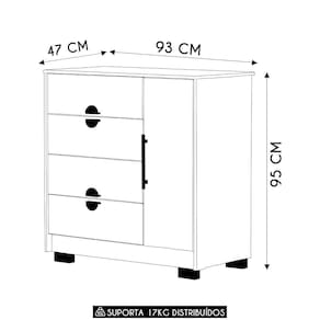 Com quatro gavetas equipadas com corrediças metálicas e uma porta lateral com prateleira móvel, a Cômoda Para Quarto oferece versatilidade e praticidade. Ela permite uma organização eficiente de diversos itens, mantendo o ambiente sempre arrumado e acessível. A estrutura foi projetada para garantir funcionalidade sem abrir mão do estilo.