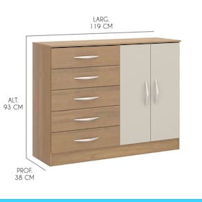 A C?moda foi desenvolvida pensando em atender todas as suas necessidades do dia a dia com um design atual, unindo versatilidade, conforto e beleza. Possui cinco gavetas e duas portas que s?o perfeitos para manter tudo organizado. Produzido com materiais de excelente qualidade, garantindo a sua durabilidade. O melhor em m?veis no design atual aliando conforto, qualidade e ?timos pre?os, s? na Menu M?veis!