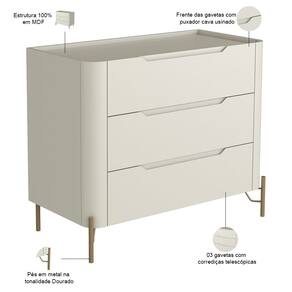Combinando design orgânico e industrial, essa cômoda moderna traz linhas curvas e pés metálicos, criando um visual único e elegante. Já os puxadores cava garantem um visual clean e contemporâneo, ideal para quartos e closets. Para completar, essa cômoda conta com estrutura robusta, uma vez que é fabricada em 100% MDF, de modo a oferecer durabilidade e resistência, mantendo o charme do seu ambiente por muito mais tempo, enquanto as amplas gavetas dispõem de espaço dinâmico para manter tudo no lugar.