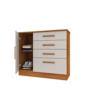 Cômoda para Quarto com Sapateira 4 Gavetas - Chicago-Cinamomo/Off White - Tcil Móveis Com a Cômoda Chicago seu quarto estará completo e seus pertences bem organizados, uma aliada na organização de seu quarto. Fabricada em MDP, possui 4 gavetas com corrediças telescópicas, sapateira na lateral com prateleira e puxadores em MDF. As corrediças telescópicas são feitas de aço e por isso são mais resistentes e duráveis, permitindo um deslize suave e uma abertura total da gaveta sem risco. Agora é só combiná-la com seu mobiliário e conquistar o quarto dos seus sonhos! Faz parte deste anúncio: 1 Cômoda para Quarto com Sapateira 4 Gavetas - Chicago - Tcil Móveis Obs: Objetos de decorações não incluso. Particularidades da Cômoda: Características: - Produto fabricado em MDP; - 4 gavetas com corrediças telescópicas; - Sapateira lateral com prateleira; - Puxadores em MDF; - Tampo em MDF 25mm; Dimensões: Altura: 91,5 centímetros Largura: 1,04 metros Profundidade: 44,8 centímetros Informações Importantes:. - Produtos podem apresentar diferenças de tonalidades entre a foto na tela e o produto real, devido a calibração de cor de tela. - Limpar com flanela ou pano macio. Não utilizar álcool. Não utilizar produtos abrasivos ou corrosivos. - Nós prezamos pela qualidade da entrega em primeiro lugar, trabalhamos com transportadoras altamente selecionadas e os melhores materiais de embalagem. - A montagem é de total responsabilidade do comprador. Antes de comprar, verifique o espaço disponível para a montagem. - Certifique-se de que o produto caiba em elevadores e vãos de escadas, não fazemos içamentos. Quaisquer despesas deste tipo ficam a cargo do cliente - Garantia de 3 meses contra defeitos de fabricação. - Ao receber o produto verificar as condições do mesmo no ato da entrega. Caso haja algum dano relatar no comprovante de entrega a ser assinado e entrar em contato com a loja o mais rápido possível.