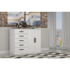 Cômoda para Quarto com Sapateira 5 Gavetas - Seul-Branco - Móveis Horizonte