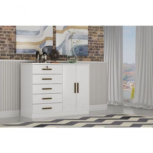 Com a Cômoda Seul seu quarto estará completo e seus pertences bem organizados, uma aliada na organização de seu quarto. Fabricada em MDF e MDP, possui 5 gavetas com corrediças telescópicas e sapateira ampla. As corrediças telescópicas são feitas de aço e por isso são mais resistentes e duráveis, permitindo um deslize suave e uma abertura total da gaveta. Agora é só combiná-la com seu mobiliário e conquistar o quarto dos seus sonhos! Aproveite!