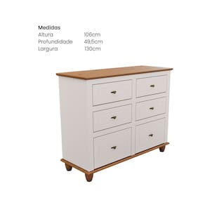 Esta incrível peça combina de maneira impecável funcionalidade, sustentabilidade e estética requintada. Começando pelo de madeira maciça de reflorestamento com 25cm de espessura nos tampos e bases, não apenas garantimos durabilidade e robustez, mas também demonstramos nosso compromisso inabalável com a sustentabilidade ambiental. O destaque dessa peça está no seu acabamento em laca e nos detalhes em baixo relevo, adicionando uma camada adicional de sofisticação ao seu design. A utilização de pintura atóxica assegura a segurança dos usuários, ao mesmo tempo em que preserva a elegância do móvel. Os puxadores e dobradiças com textura em ouro envelhecido são um tributo ao charme vintage, elevando o estilo a um patamar supeior. Produto Montado: Sim Acabamento da Gaveta: Pintura UV Acabamento dos Pés: Pintura Altura dos Pés: 10,5 cm Altura Máxima dos Pés: 10.5000 Ambiente Principal: Quarto de Bebê codigo_ean: 7900288231147 Complexidade da Montagem: Média: pode ser montado por mais de uma pessoa e/ou necessite de maior conhecimento para montagem Cor: Off White/Nogueira Cor do Produto: Off White/Nogueira Cor Interna: Off White Escala de Brilho: Semi-Brilho Escala de Brilho da Gaveta: Semi-Brilho Gaveta com Chave: Não Itens Inclusos: 1 Cômoda, Kit Ferragens e Manual de Montagem Linha ou Coleção: Joy Manual de Montagem e Instalação: https://product-hub-prd.madeiramadeira.com.br/326573016/documents/52b39a82-c030-4cbb-a2e8-0fbbf0ef788ebc14c05131179b6b1755289759.pdf Marca: Móveis Serpil Material da Gaveta: MDF Material do Fundo: MDF Material do Puxador da Gaveta: Metal Material dos Pés: Madeira Maciça Material Principal: MDF modular: Não Necessita Montagem: Sim Origem do Produto: Nacional Pés Reguláveis: Não Peso: 65 kg Peso Máximo por Gaveta: 7 kg Possui Espelho: Não Possui Nichos: Não Possui Pés: 04 Possui Portas: Não Possui Prateleiras: Não Possui Rodízio: Não Possui Trocador: Não Quantidade de Gavetas: 06 Gavetas Recomendações de Uso, Manutenção e Limpeza: Use um pano macio levemente umedecido. Não utilizar produtos abrasivos. Sapatas Niveladoras: Não Sistema de Montagem: Cavilhas, parafusos e minifix. Suporta Até (kg): 50 kg Tipo de Cômoda: Bebê Tipo de Corrediça da Gaveta: Metálica Telescópica Tipo de Madeira Maciça dos Pés: Pinus Tipo de Puxador da Gaveta: Externo