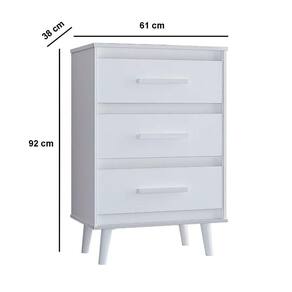Cômoda Para Quarto Pé Palito 3 Gavetas Lima Branco A Cômoda 3 Gavetas Pequena Lima é perfeita para quem busca praticidade e organização em espaços compactos. Com design moderno e acabamento elegante, ela se adapta facilmente a diferentes estilos de decoração, trazendo charme e funcionalidade ao ambiente. Suas 3 gavetas espaçosas oferecem o lugar ideal para organizar roupas, acessórios e objetos pessoais, mantendo tudo sempre à mão. Compacta e versátil, pode ser utilizada no quarto, no closet ou até em áreas de apoio, otimizando o espaço sem abrir mão da beleza. Fabricada com materiais resistentes, garante durabilidade e praticidade no dia a dia, sendo uma escolha inteligente para quem deseja aliar estilo e organização. Transforme seu ambiente com a praticidade da Cômoda Lima Pequena 3 Gavetas e mantenha sua casa sempre em ordem! Dimensões da Cômoda para Quarto 3 Gavetas: Altura: 61 cm Largura: 92 cm Profundidade: 38 cm