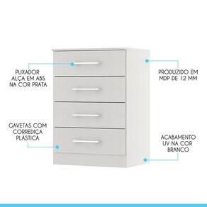 Cômoda Para Quarto Solteiro Com 4 Gavetas Mdp Menu Móveis Branco Voce merece o melhor quando se trata de moveis para sua casa e a escolha certa para atender todas as suas necessidades. Com um design atual, une versatilidade, conforto e beleza. Com quatro gavetas, voce tera muito espaco para manter tudo organizado e ao alcance das maos. Produzida com materiais de excelente qualidade, garantindo a sua resistencia ao desgaste diario e mantendo sua beleza e funcionalidade por muito tempo. O melhor em moveis no design atual aliando conforto, qualidade e otimos precos, so na Menu Moveis! Caracteristicas: Produzido em MDP de 12 mm Acabamento UV 04 Gavetas com Corredica Plastica Puxadores Alca em ABS Cromado