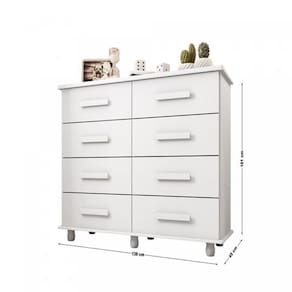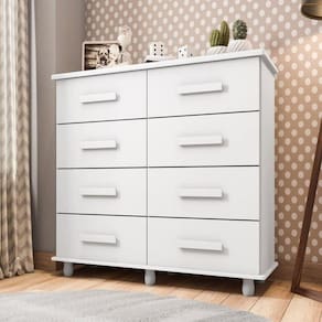 Descrição do produto: A Cômoda Paris é uma ótima opção para organizar suas roupas e deixar seu quarto muito mais bonito e completo. Corpo produzido em MDP 15 mm e o tampo em MDF 25 mm, produto robusto e com qualidade. Possui 8 gavetas com corrediças telescópicas que permite abertura total da gaveta, permitindo acomodar os pertences com mais facilidade. Pés em madeira, evita absorção da umidade.