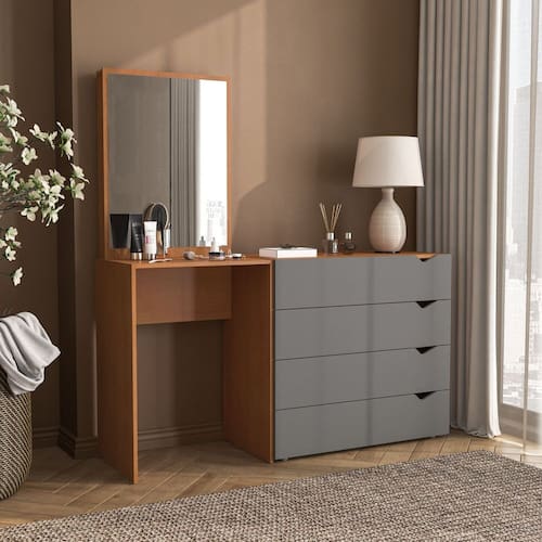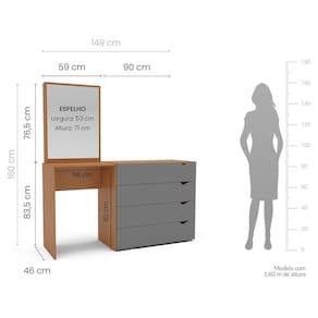 A Cômoda Penteadeira com Espelho Porto da Politorno Móveis é a escolha perfeita para quem busca elegância, funcionalidade e otimização de espaço em um único móvel. Com design moderno e sofisticado na cor cinza e freijó, ela combina a praticidade de uma cômoda com a utilidade de uma penteadeira, ideal para quartos que exigem versatilidade sem abrir mão do estilo. Com 149 cm de largura, 160 cm de altura e 46 cm de profundidade, oferece amplo espaço com 4 gavetas funcionais, um tampo generoso para itens de uso diário e um espelho grande que valoriza ainda mais o ambiente. Fabricada em MDP com acabamento em pintura UV semi fosco, é resistente, durável e fácil de limpar, trazendo beleza e praticidade para sua rotina com o padrão de qualidade da Linha Porto da Politorno. Produto Montado: Sim Acabamento da Gaveta: Pintura UV Altura do Espelho: 71 cm Ambiente Principal: Quarto codigo_ean: 7900288187741 Complexidade da Montagem: Média: pode ser montado por mais de uma pessoa e/ou necessite de maior conhecimento para montagem Cor: Freijó/Cinza Cor do Produto: Freijó/Cinza Cor Interna: Freijó Escala de Brilho: Semi-Fosco Escala de Brilho da Gaveta: Semi-Fosco Espessura do Espelho: 3 mm Fita Integrada: Sim Formato do Espelho: Retangular Gaveta com Chave: Não Itens Inclusos: 1 Cômoda, Kit de Ferragens, Manual de Montagem e Termo de Garantia Largura do Espelho: 53 cm Linha ou Coleção: Porto Manual de Montagem e Instalação: https://product-hub-prd.madeiramadeira.com.br/353416018/documents/f7864bd0-aea2-407f-ad66-882ab08bea8c3049185622417515665992404.pdf Marca: Politorno Material da Gaveta: MDP Material do Fundo: MDP Material Principal: MDP Necessita Montagem: Sim Origem do Produto: Nacional Peso: 32 kg Peso Máximo por Gaveta: 5 kg Possui Espelho: Sim Possui Nichos: Não Possui Pés: Não Possui Portas: Não Possui Prateleiras: Não Quantidade de Espelho: 01 Quantidade de Gavetas: 04 Gavetas Recomendações de Uso, Manutenção e Limpeza: Utilize um pano macio umedecido com água e sabão neutro, seguido de pano seco. Não utilize produtos químicos ou abrasivos para limpeza, pois estes danificam o revestimento do móvel. Sapatas Niveladoras: Não Sistema de Montagem: Cavilha, Parafuso, Minifix e prego. Suporta Até (kg): 15 kg Tipo de Cômoda: Adulto Tipo de Corrediça da Gaveta: Metálica Telescópica Tipo de Fixação do Espelho: Fita Dupla Face Tipo de Puxador da Gaveta: Embutido Marca: Não Informado